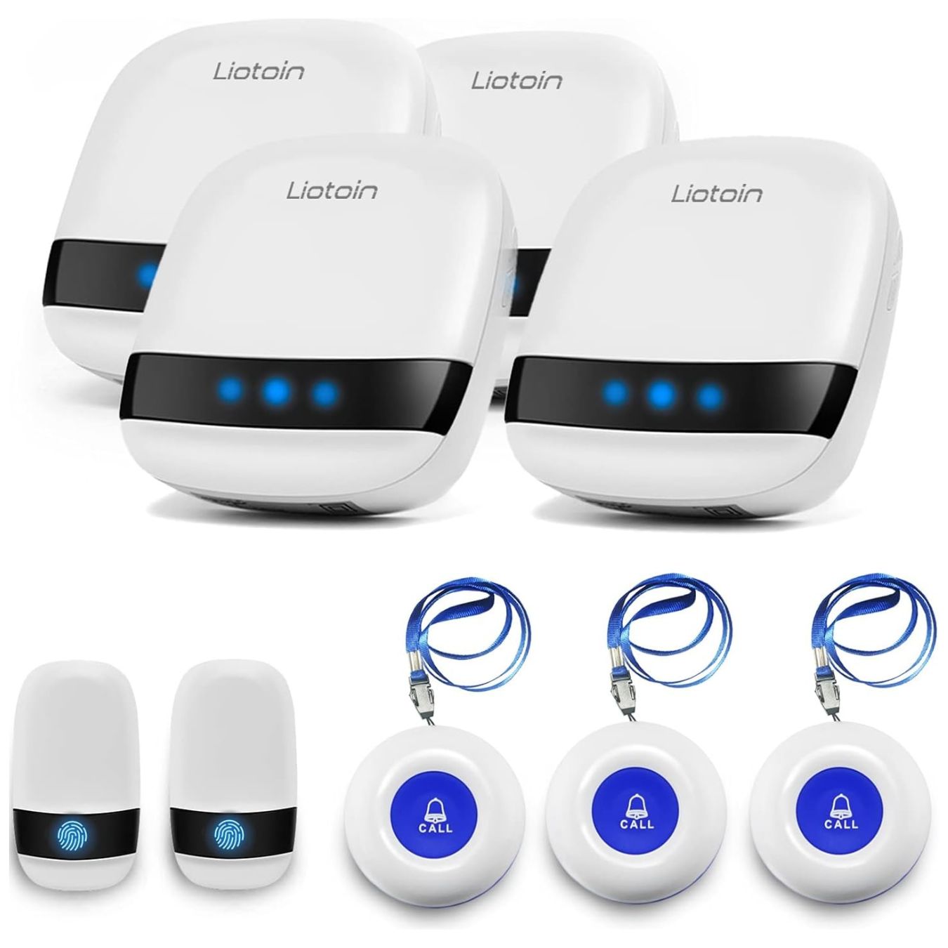 - This set includes five call buttons and four pagers, one of which features a touchscreen for easy use, making it ideal for patients with limited strength. A simple touch is all it takes to call for assistance, alerting the caregiver through the wireless receiver.
